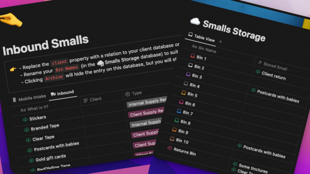 Use this Notion template to help keep track of the small parcels being delivered to your warehouse or office!